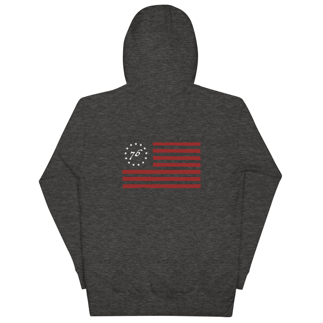Our soft, warm heavyweight hoodie sporting the Besty Ross Flag